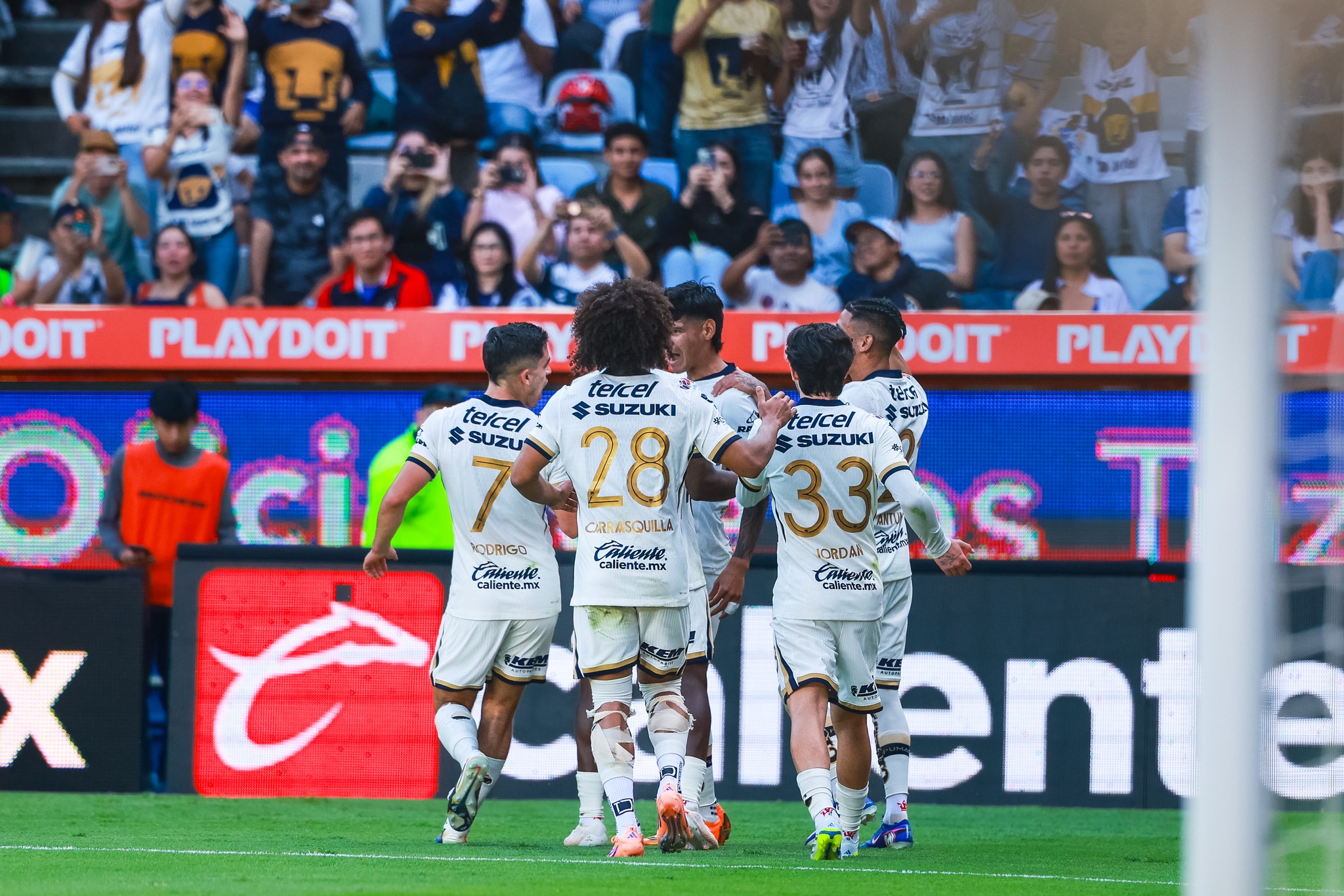 El golpe inicial llegó muy temprano en el encuentro. Apenas al minuto 6, Uriel Antuna apareció dentro del área para conectar un cabezazo certero que adelantó a los felinos, marcando el tono de un partido que rápidamente se inclinó a su favor.